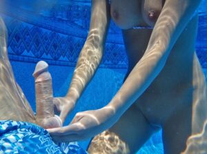 Mora da sam zurio u njenu pičku dobrih pet minuta, dok me je ona samo posmatrala. Konačno je ušla u bazen. Počeo sam da plivam dalje od platforme, ali ona je doplivala iza mene i rekla mi da joj priđem. Nervozno sam to uradio i osetio sam kako njena ruka putuje niz moja leđa i okolo do mog stomaka.